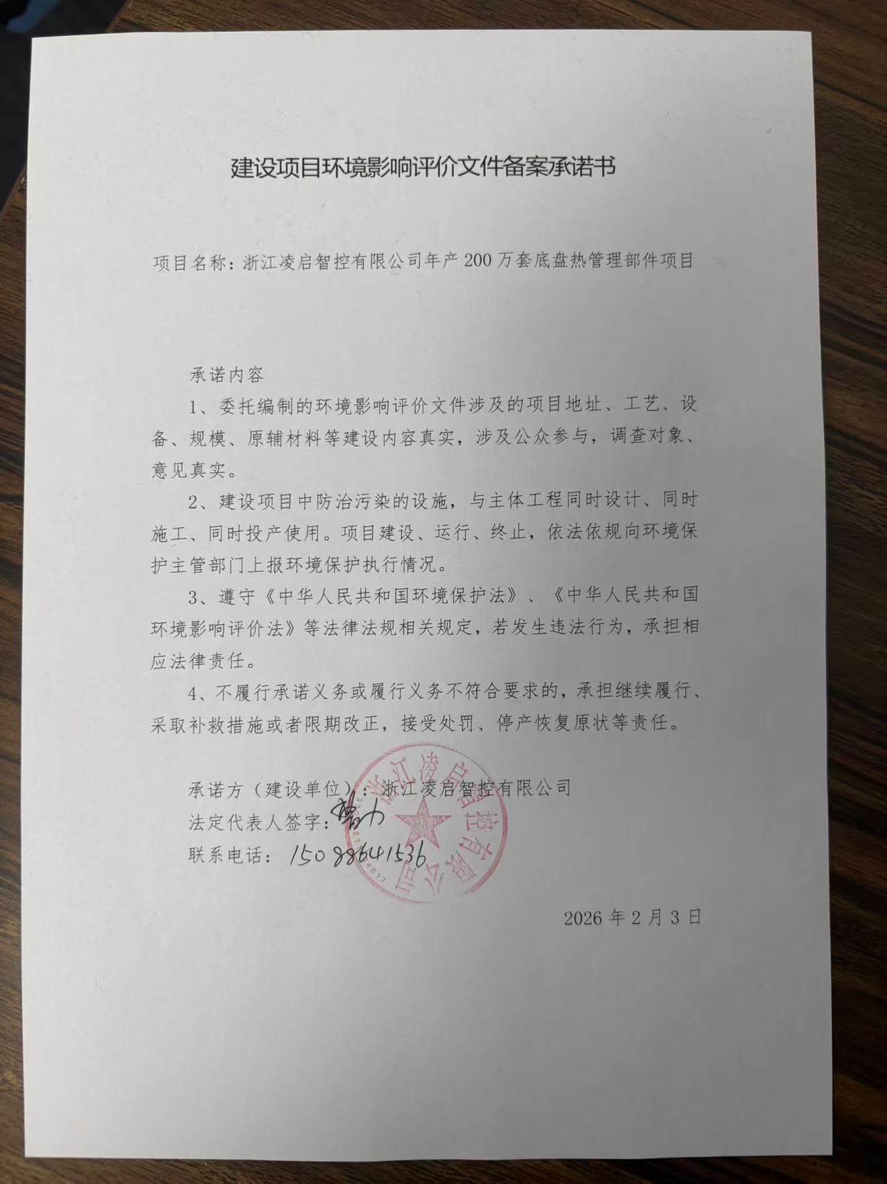 建设项目环境影响评价备案承诺书